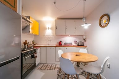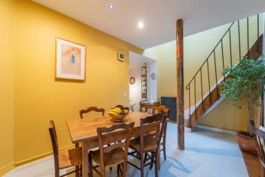 Nichée dans une impasse calme et verdoyante, ce bien est sur plusieurs niveaux offre 2 chambres, un salon, un espace laverie, Wi-Fi rapide, commerces dans la rue Métro (lignes 3, 9, 2, 8, 5, 11) ✔ Salon convivial avec jeux de société ✔ Cuisine équipée & coin repas 6 pers. ✔ Laverie avec machine à laver & sèche-linge Dépôt de bagages dès 11h30 Location parking sur demande Check in en personne