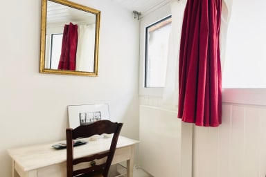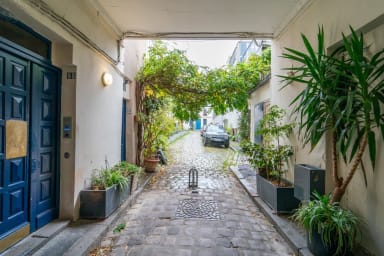 Nichée dans une impasse calme et verdoyante, ce bien est sur plusieurs niveaux offre 2 chambres, un salon, un espace laverie, Wi-Fi rapide, commerces dans la rue Métro (lignes 3, 9, 2, 8, 5, 11) ✔ Salon convivial avec jeux de société ✔ Cuisine équipée & coin repas 6 pers. ✔ Laverie avec machine à laver & sèche-linge Dépôt de bagages dès 11h30 Location parking sur demande Check in en personne
